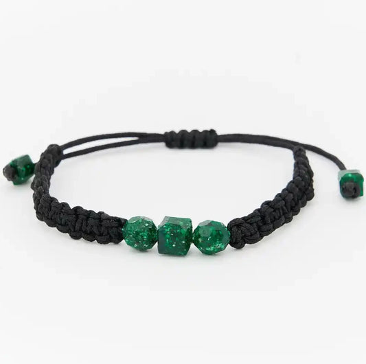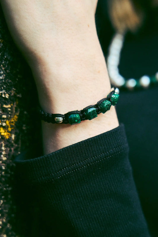 Brazalete con 2 esmeraldas cuadradas naturales encapsuladas y 3 esferas de neopreno