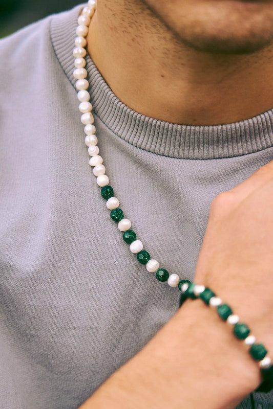 Collar único con esmeraldas naturales encapsuladas y perlas naturales