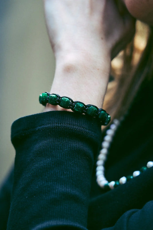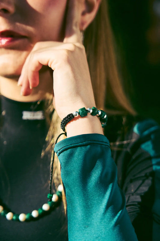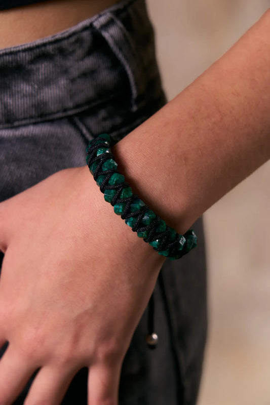 Para Ella: Brazalete con 4 esmeraldas cuadras naturales encapsuladas y 2 esferas neopreno