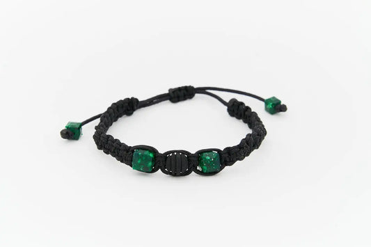 Brazalete con 2 esmeraldas cuadradas naturales encapsuladas y 1 esfera de neopreno
