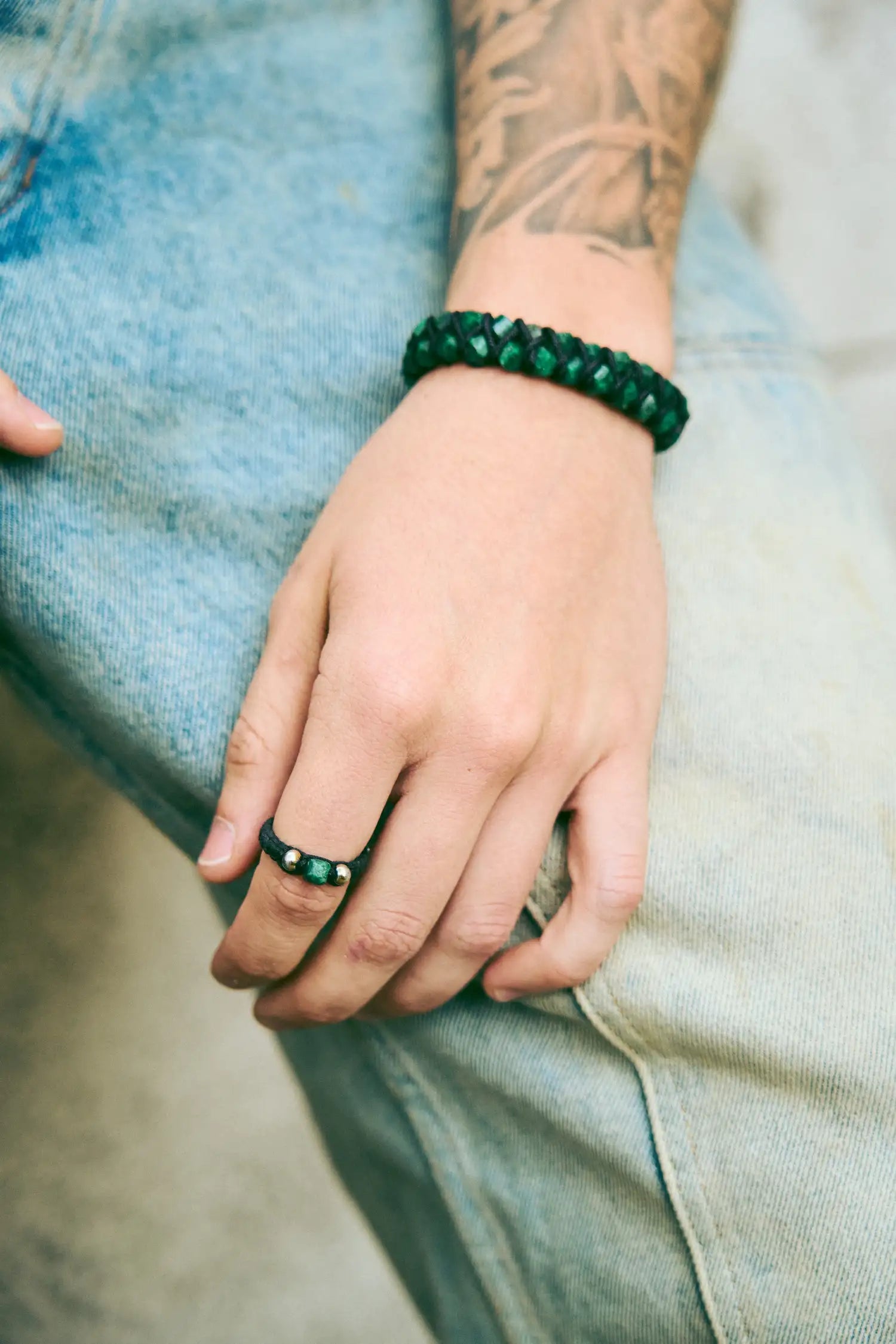 Las esmeraldas encapsuladas aportan un toque de lujo, combinado con la simplicidad del hilo, creando una pieza que es tanto sofisticada como versátil.